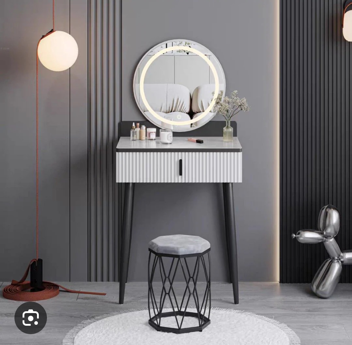 Măsuță de machiat cu oglindă si scăunel .Blatul mesei este din cermaică.